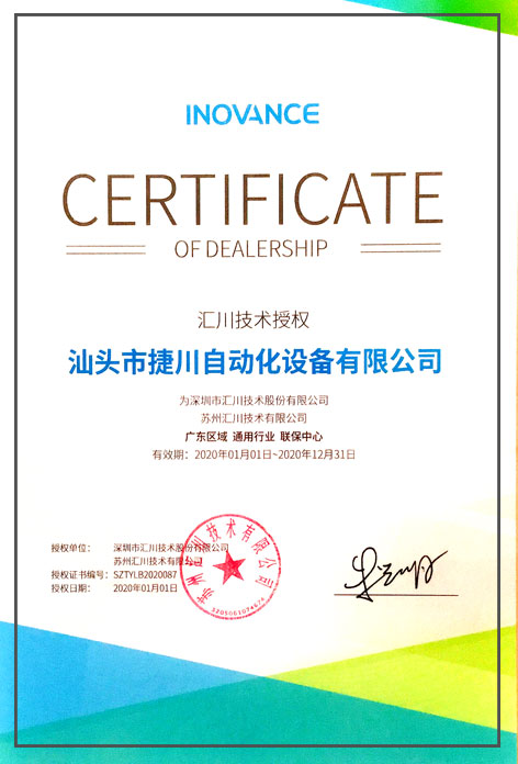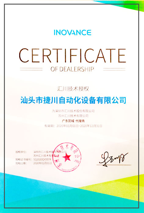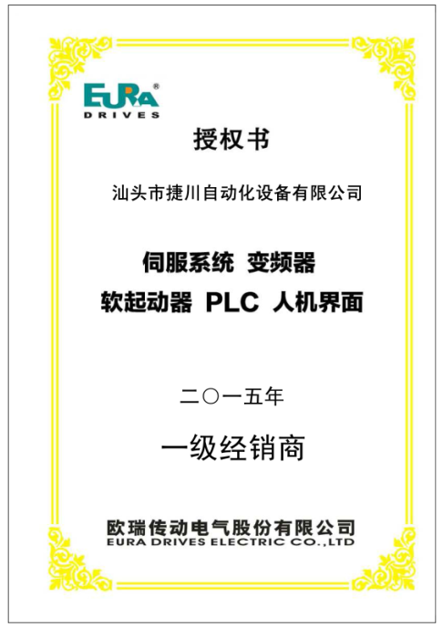 歐瑞傳動代理證書