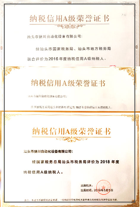 捷川A級納稅證書